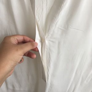 This is the lightest most comfiest top, it is so light and airy and just has the most amazing silhouette, very attractive on tucked in or loose. EUC, pet free smoke free home! This top has a twin in a diff color! Somewhat sheer fabric but doesn’t need a cami-