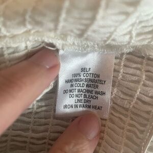 Fitted blouse in cotton with a square neckline front and back. Long puff sleeves over the shoulders.