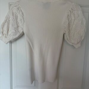 Cute white top with designed puffy sleeves. Super cute to wear with jeans I just never wore it. In perfect condition! Size XS