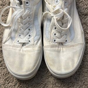 Stylish white sneakers with lace-up design. Perfect for casual wear. They are worn in.