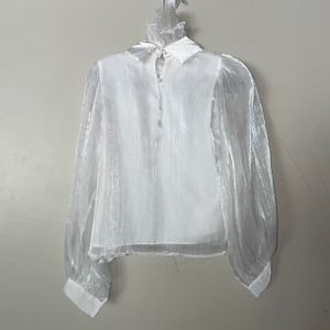 White Victorian style blouse. Size small. Poofy sleeves and ruff inspired collar. Like new condition