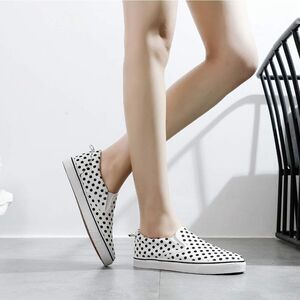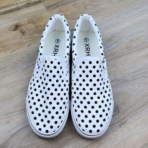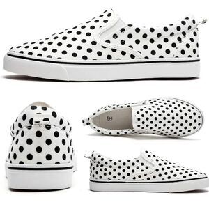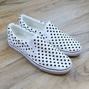 ☔️🔥White w/Black Polka Dot Canvas Slip-on Sneakers Size 8