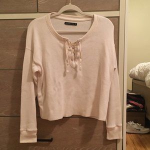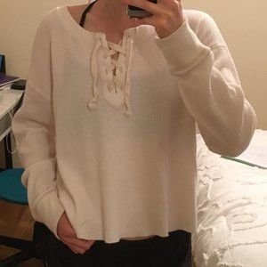 White long sleeve from Abercrombie and Fitch made of waffle fabric with tie up laces. Lightly worn, in great condition!