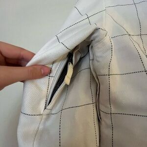 Overall great condition, some minor discoloration around the sleeves and other areas, but not very noticeable. The fabric tie came off of the main zipper, but that is the only flaw I can see. Great warm jacket, used once and didn’t fall in it. Fabric is softer but still repels water.