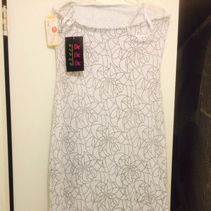 White with black glitter strapless dress