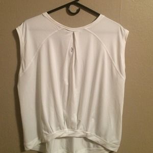 This is a white work out top with cute pleating in the back. It is a mesh material and is short but not a crop top.