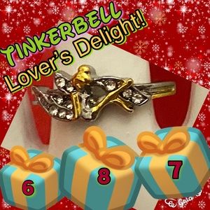 A Tinkerbell lover’s delight! This high shine 3X GEP with yellow and white gold elements has an adorable likeness of a tiny winged fairy or pixie with CZ accents
