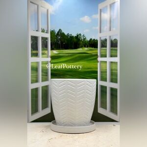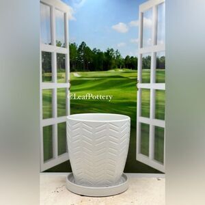 White Arrow ( LG) Ceramic Planter Pot with Saucer Attached