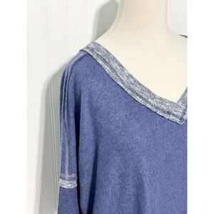 White Birch Women's Brushed Oversize V Neck Long Sleeve T-Shirt Blue Size Small