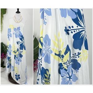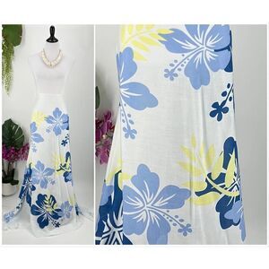 White Blue Yellow Tropical Hibiscus MAXI SARONG Kīkepa Pareo Beach Wrap Skirt