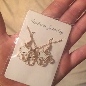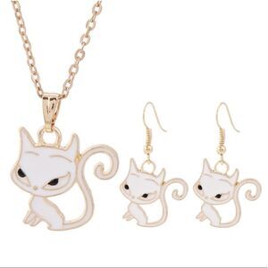 Adorable white kitties! Necklace and earrings. Metal is zinc alloy. New in package.
