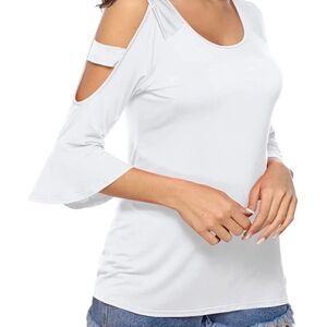 White Cold Shoulder 3/4 Sleeve Casual Tshirt Top