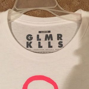 White, short sleeve tee by GLMR KILLS with coral anchor and black lettering. Worn only once!! Super cute and soft!!