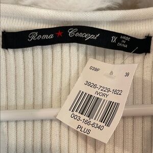 White/Cream Ribbed Cardigan with Faux Fur Collar, Tie Open Front, 1x, NWT