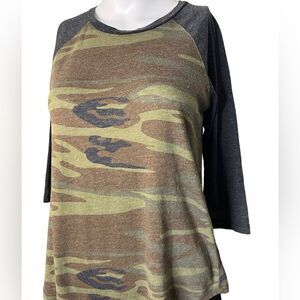 White Crow Camouflage 3/4 Baseball Tee Green & Dark Grey Size XS
