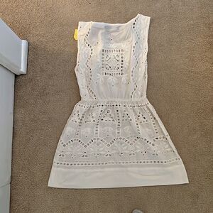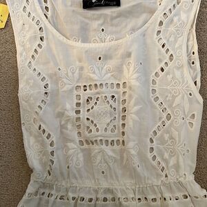 Never worn. Minor mark on bottom. Can get out in wash or dry clean. Great summer dress. Lightweight. Really cute fit.