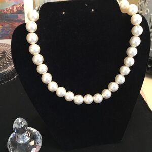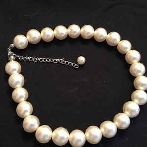 Big and beautiful 10 mm white faux pearls in this adjustable 14” to 17” necklace. Lobster claw clasp and extender chain are silvertone. $10 each or bundle 3 of same price for $20 and save.