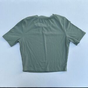 White Fox Ribbed Short Sleeve Top Green XS Casual Basic Tee