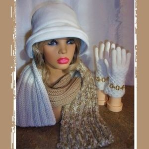 White+Gold Gloves AND White+Tan Scarf AND White Hat !!!
