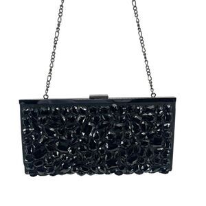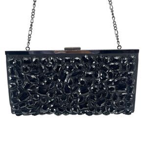 white house black market whbm black beaded evening clutch hard case purse chain strap frame clasp cocktail formal wedding party handbag womens accessory