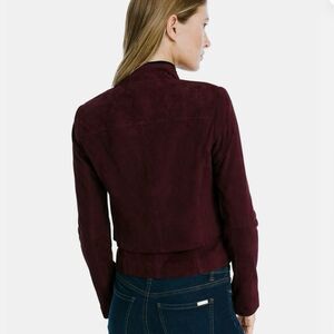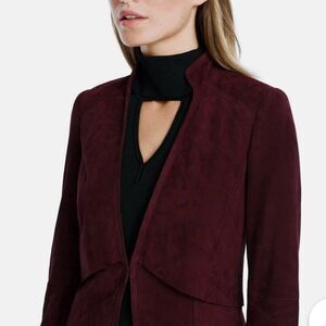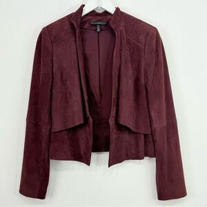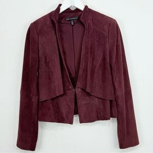 White House Black Market Burgundy Genuine Leather Cropped Flap Jacket