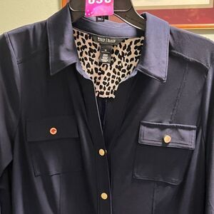 White House Black Market Navy Shirt Dress with Leopard Print Lining Size 10 #058