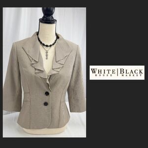 White House Black Market Ruffle Collar Blazer –Fitted - Taupe Beige - Size 6