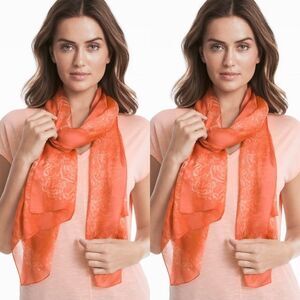 White House Black Market Silk Floral Shadow Stripe Scarf