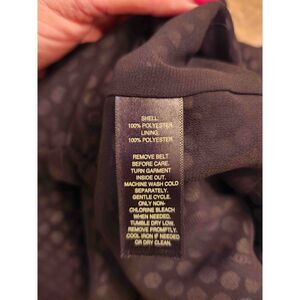 White House Black Market polka dot dress with pockets, adjustable straps with buttons, tie belt