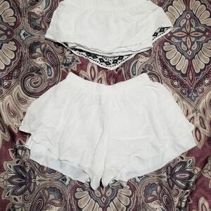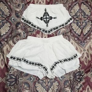 White Linen Like Embroidered Shabby Chic Boho Two Piece Tube Top & Shirts Set. No tags, fits XS/Small.