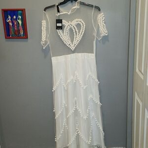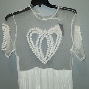 absolutely stunning sheer maxi fully lined lower with cotton puff detailing short sleeve