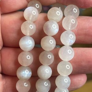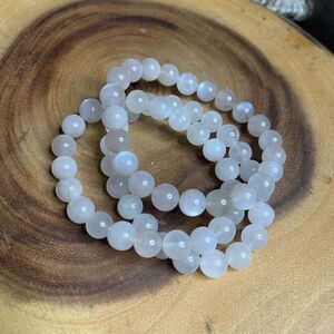 White Moonstone beaded bracelet 7” crystal healing beads 8mm blue flash
