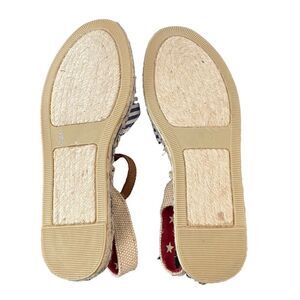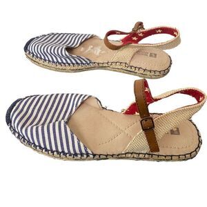 White Mountain Espadrille Striped Tan/Blue Sandals Sz 6.5