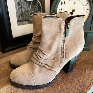 White Mountain Light Taupe Suede zip up booties