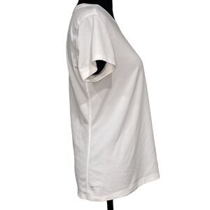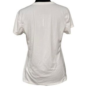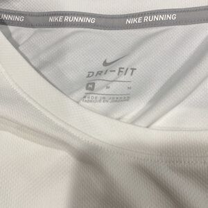 White running shirt. Has some loose threads but otherwise in great condition. No odors. Comes from smoke free home