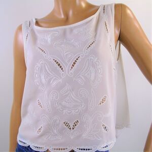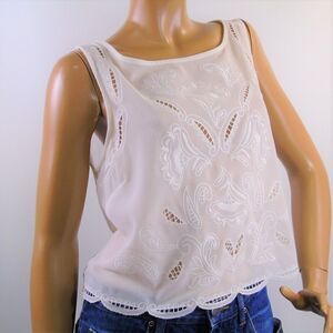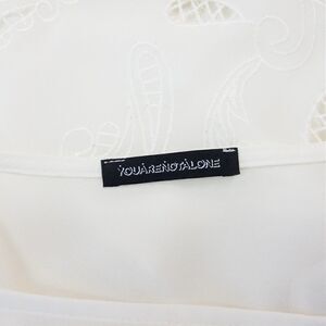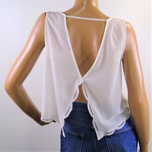 You Are Not Alone Women's Open Back Blouse . White . Floral Embroidery & Cut Out Work Details . Size Medium . Measurements Laid Flat : 20" Across Bust / 18" Long .