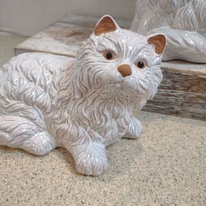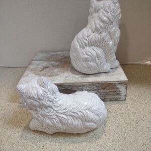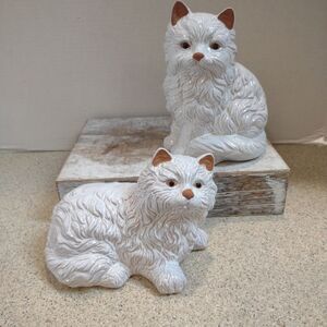 👍 White Persian Cat and Kitten Set of 2 Terracotta Figurines. C1