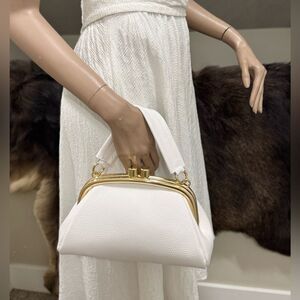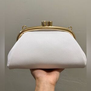 White Premium Pebble Leather Handmade Kisslock Clutch Bag, Multi Use Style