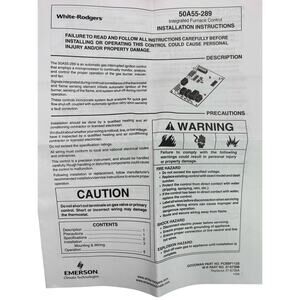 New White-Rodgers 50A55-289 integrated fan control board (part number PCBBF112S) compatible with silicon carbide ignitors. Comes with original box, pink anti-static wrap, and installation manual. For use in gas furnace systems – ensure compatibility before installing.