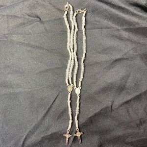 This is a clear white piece that can be used as a Necklace or mini Rosary.