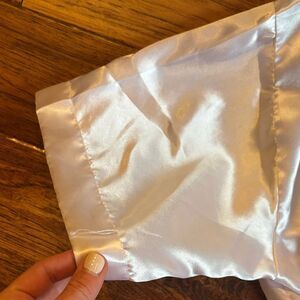 Elegant white satin robe with 'Bride' embroidery. Perfect for weddings.