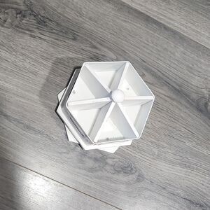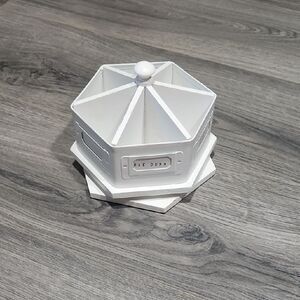 White Shabby Chic Rae Dunn Turnabout Wooden Storage, gently used but no major flaws. You can label what you want on the 6 sections. Great universal storage container.
