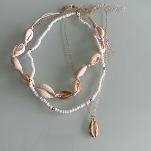 Elevate your style with this stunning gold and white shell layered necklace. Perfect for any occasion, this piece adds a touch of elegance to your outfit.