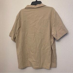 White Stag vintage khaki tan short sleeve button up embroidered tropical top L