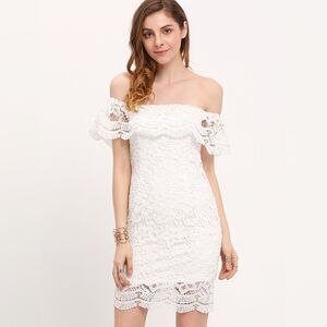 ✨White Straight Across Lace Ruffle Bodycon Dress✨