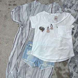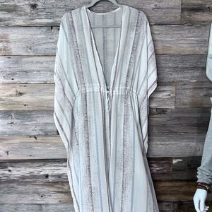 White Striped Print Drawstring Open Front Maxi Kimono💗