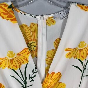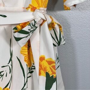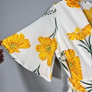 White&Yellow Summer Romper Size Small Tie Waist Wrap 1 Piece Gold Floral Favlux