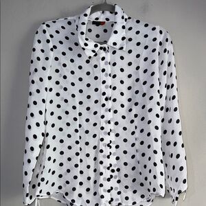 This elegant top features a classic button-down style with a playful polka dot pattern.