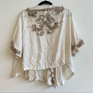 White and Beige Embroidered Boho Short Kimono Size XS/S