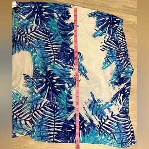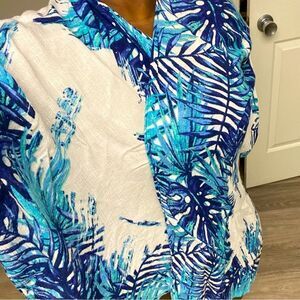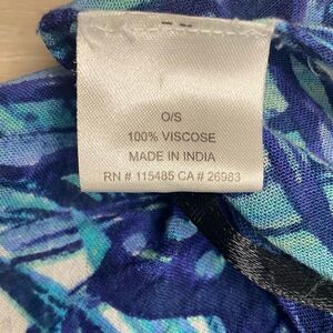 No brand tag present, coverup in great condition and not that long, I’m 5,2 and it just covers bottom area. 100% Viscose made in India